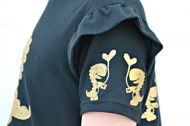 I'm also really stoked because this adorable Dino Valentines Card was in Cricut Design Space and my girls fell in love with it! I adapted the card a bit so I could just cut out just the Dino and we went to work on making a Dino fabric to turn into a dress.