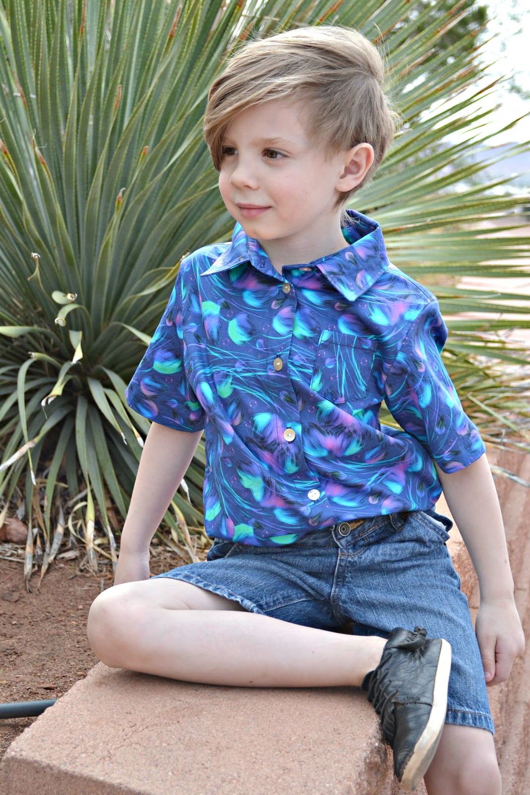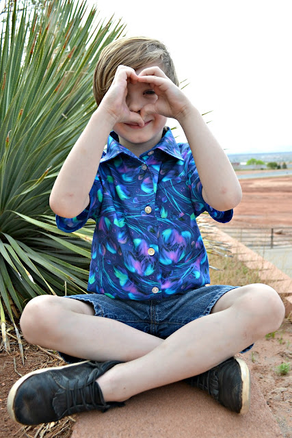 So what do I do?? Completely ignore that pile and cut out a button up for Jude. LOL I just love button ups on my boys. Can you blame me though??