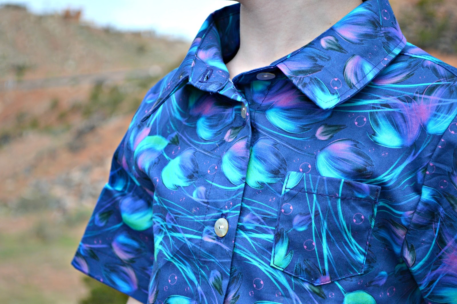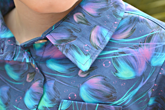 Now why do I do these hacks, do you ask? I've tried a few different button up patterns, and I have always had issues with the stand up collar and collar in every single one of them. They're either too big, too small, you get the idea. It drives me nuts. But in the Friday dress, that collar is PERFECT.