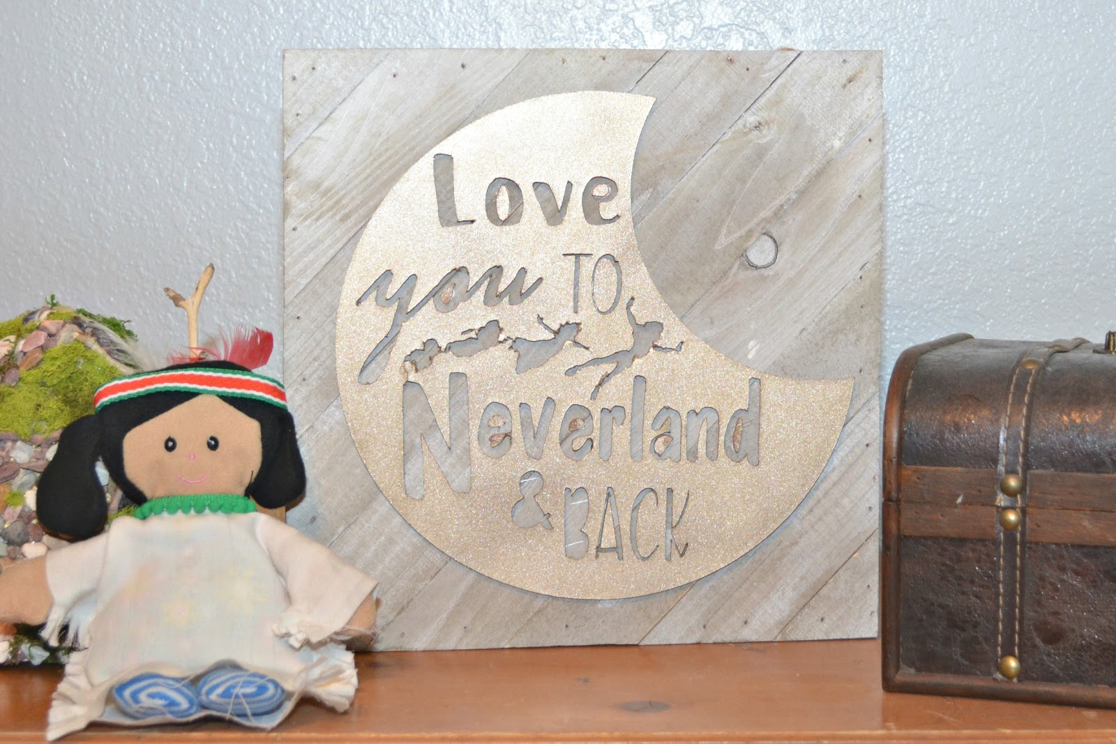 I spray painted the letters gold just like the moon and again used a glue gun to glue them onto the wood frame.