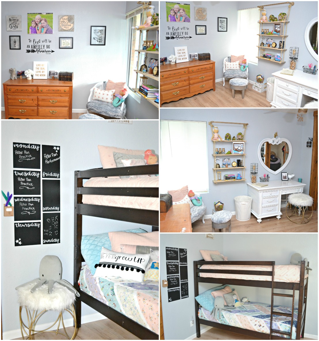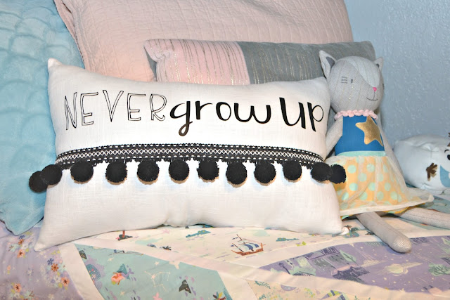 The inspiration for this room is Riley Blake Designs Neverland line. The colors are just gorgeous and Peter Pan is such an amazing theme for a kids room! I know most are for boys, but there is so much in Peter Pan that is for girls.