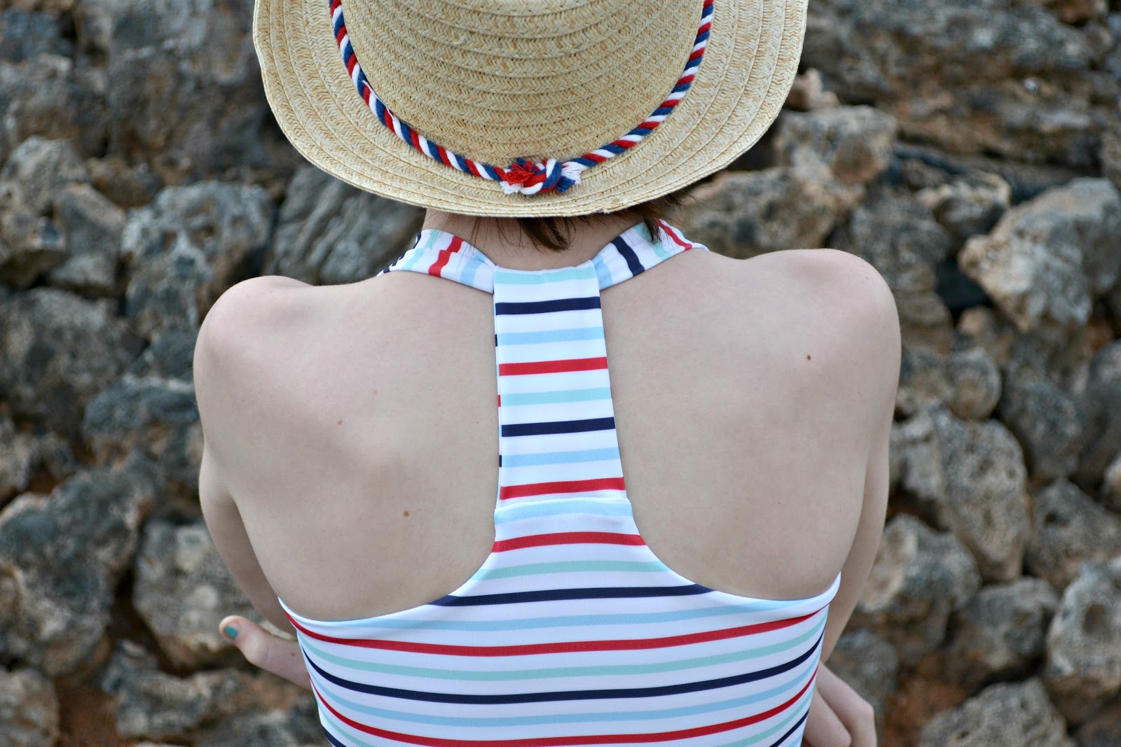 For this stripe suit I used the Solis Tunic and Dress by Sofiliantjes size 6 bodice and the bottoms are Boo Designs Swimmers Classic Briefs - also size 6.