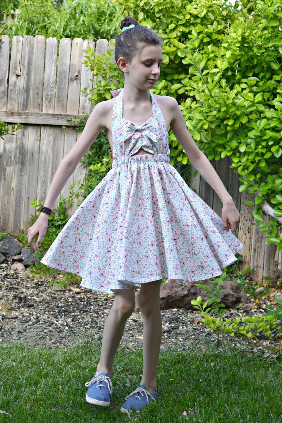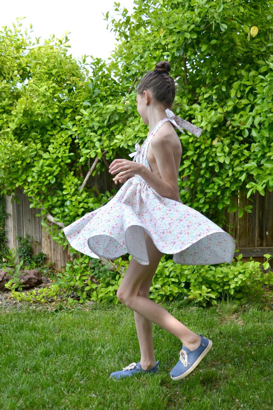 One of my favorite things about this pattern is the circle skirt. Look at the twirl on it!