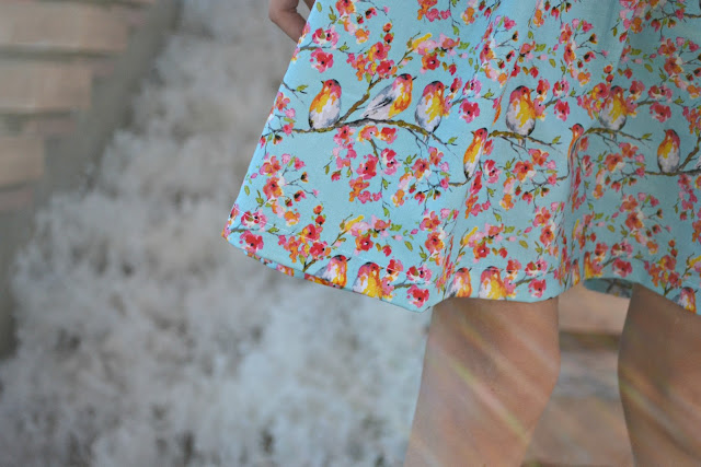 The colors in this print are so vibrant and those birds are so sweet! I also love how many options it gives me to pair with a solid cardigan, so this dress can transition well in the winter.