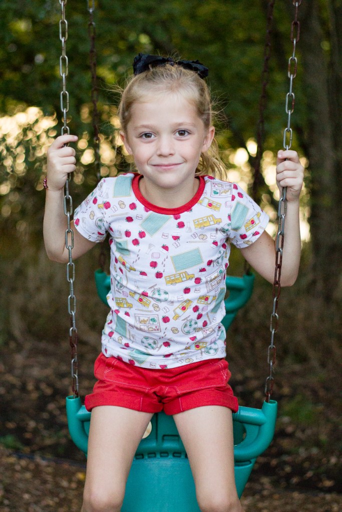 We also have Pear Berry Lane sharing off this adorable back to school outfit. I know my girls would love that fabric!