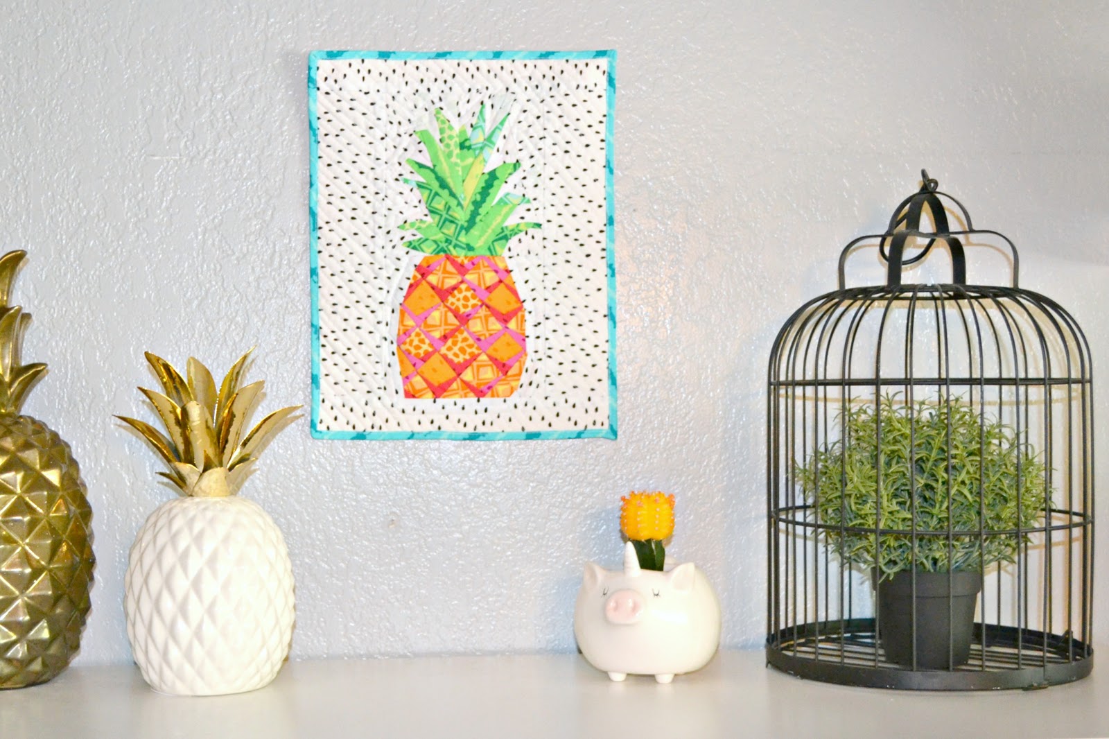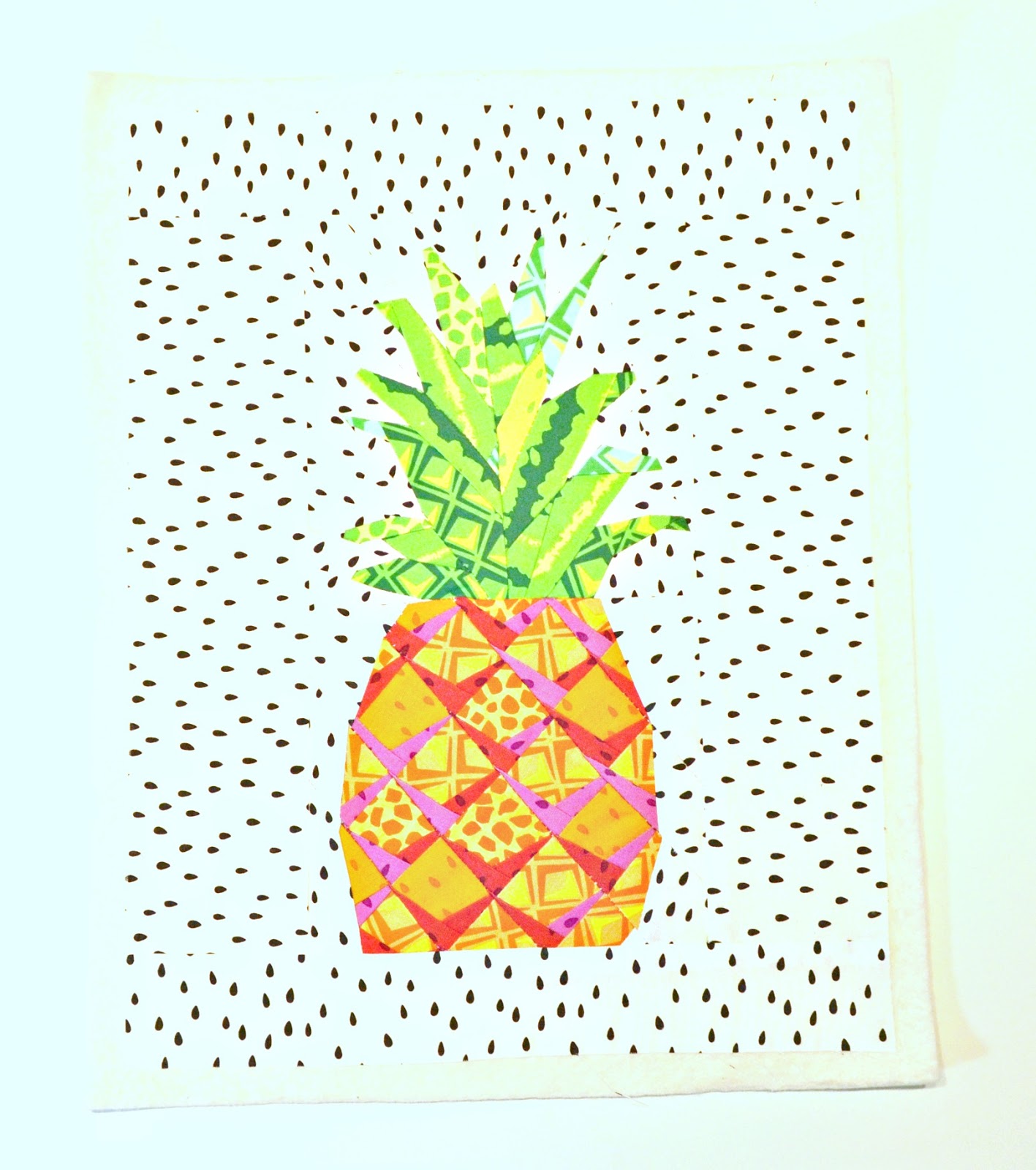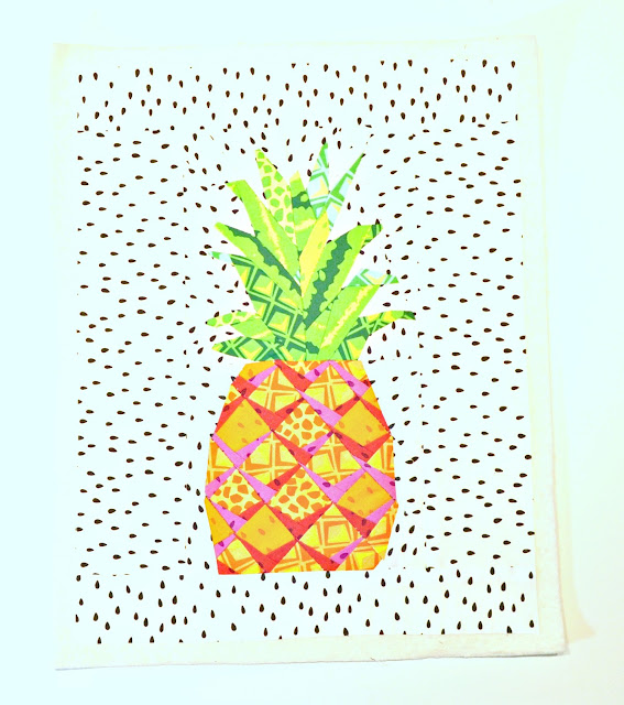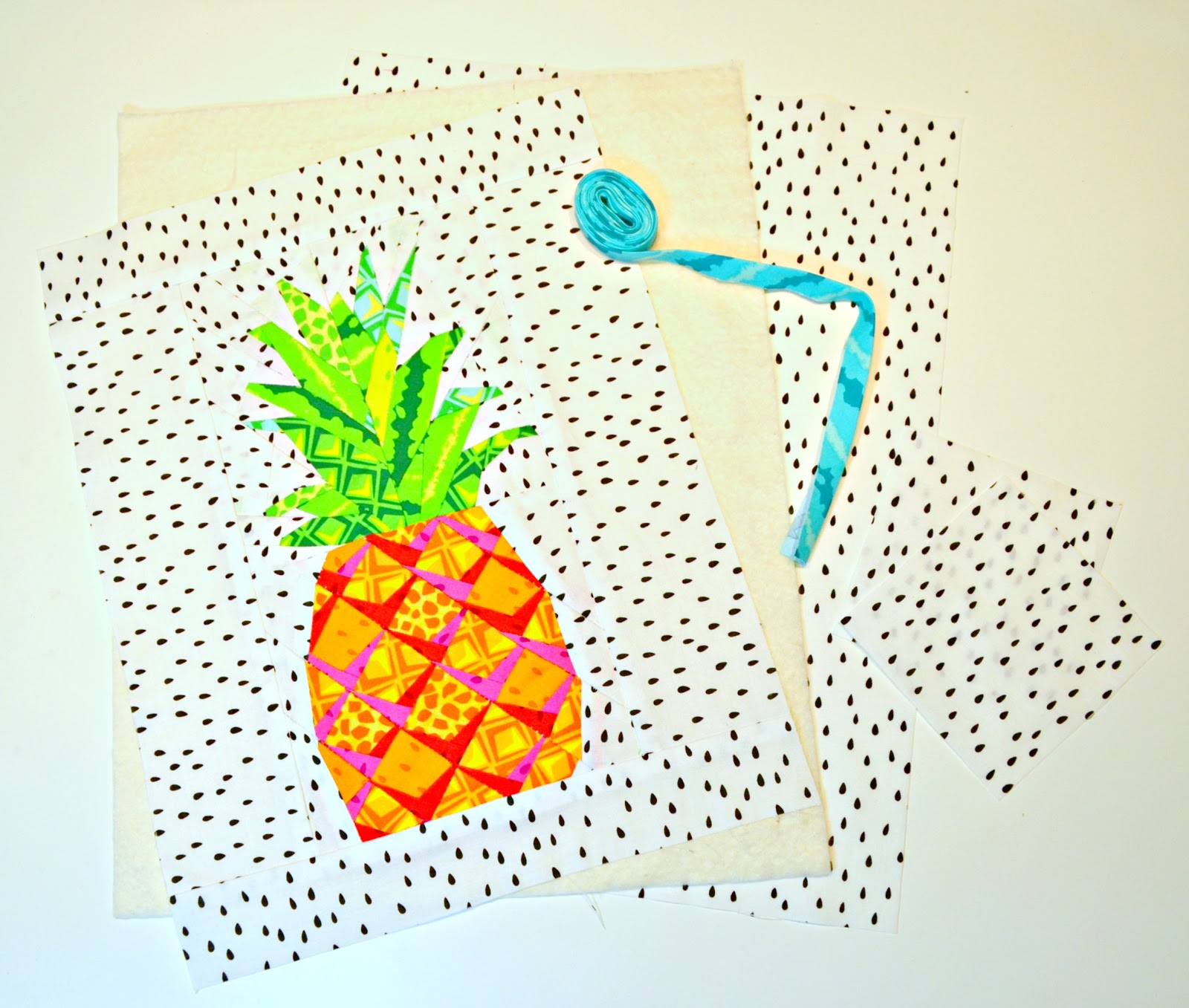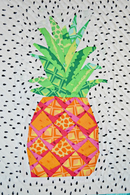 I just love bright colors and Michael Miller's new line, Sew Fruity, is chalk full of them! They make me happy and I couldn't resist making a pineapple mini quilt wall hanging so I get that little extra happiness whenever I see it in my sewing room wall!