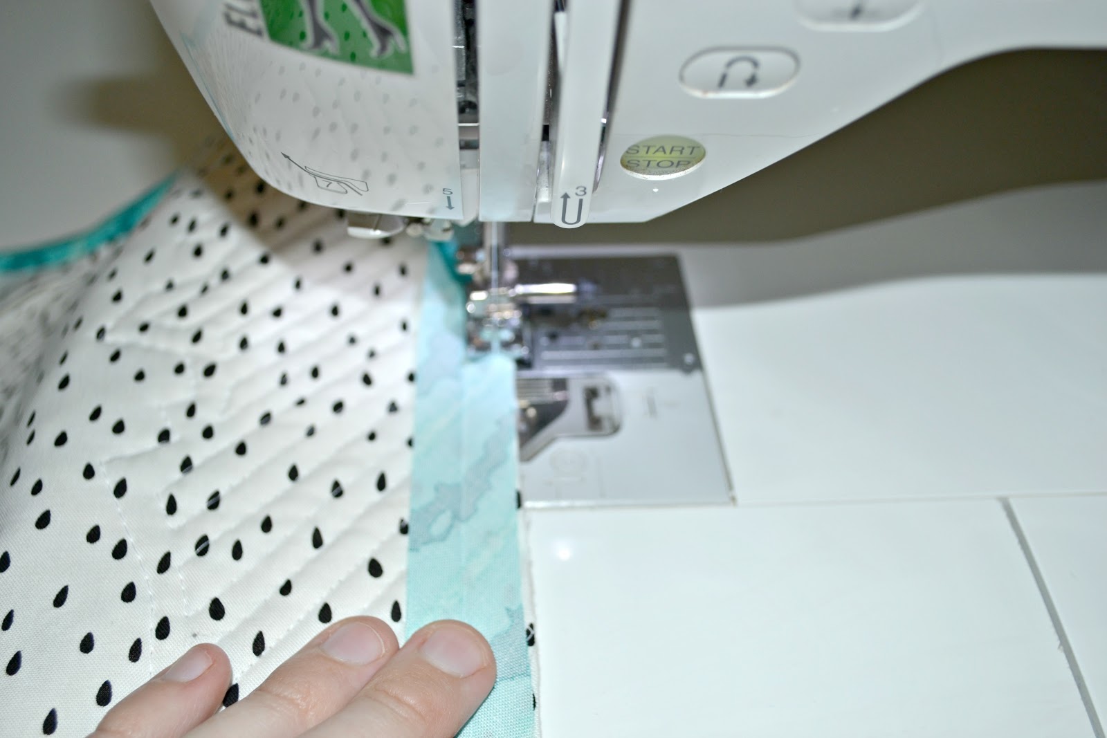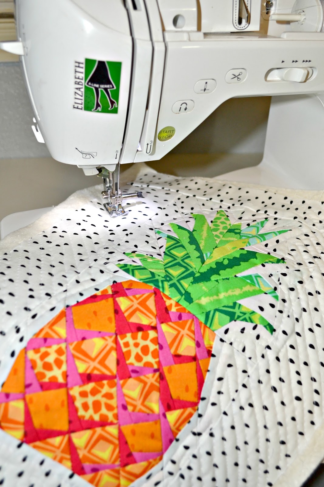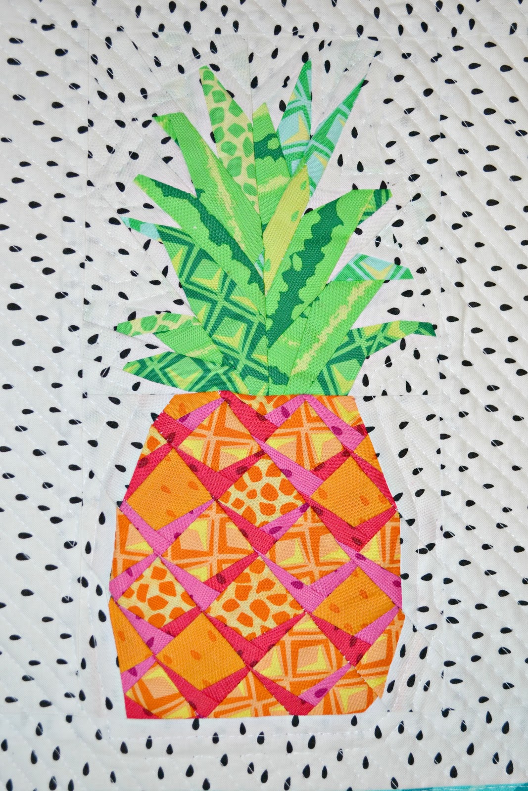 Quilt with a design you like. I chose to outline the pineapple and then do a diagonal stitch across the rest.