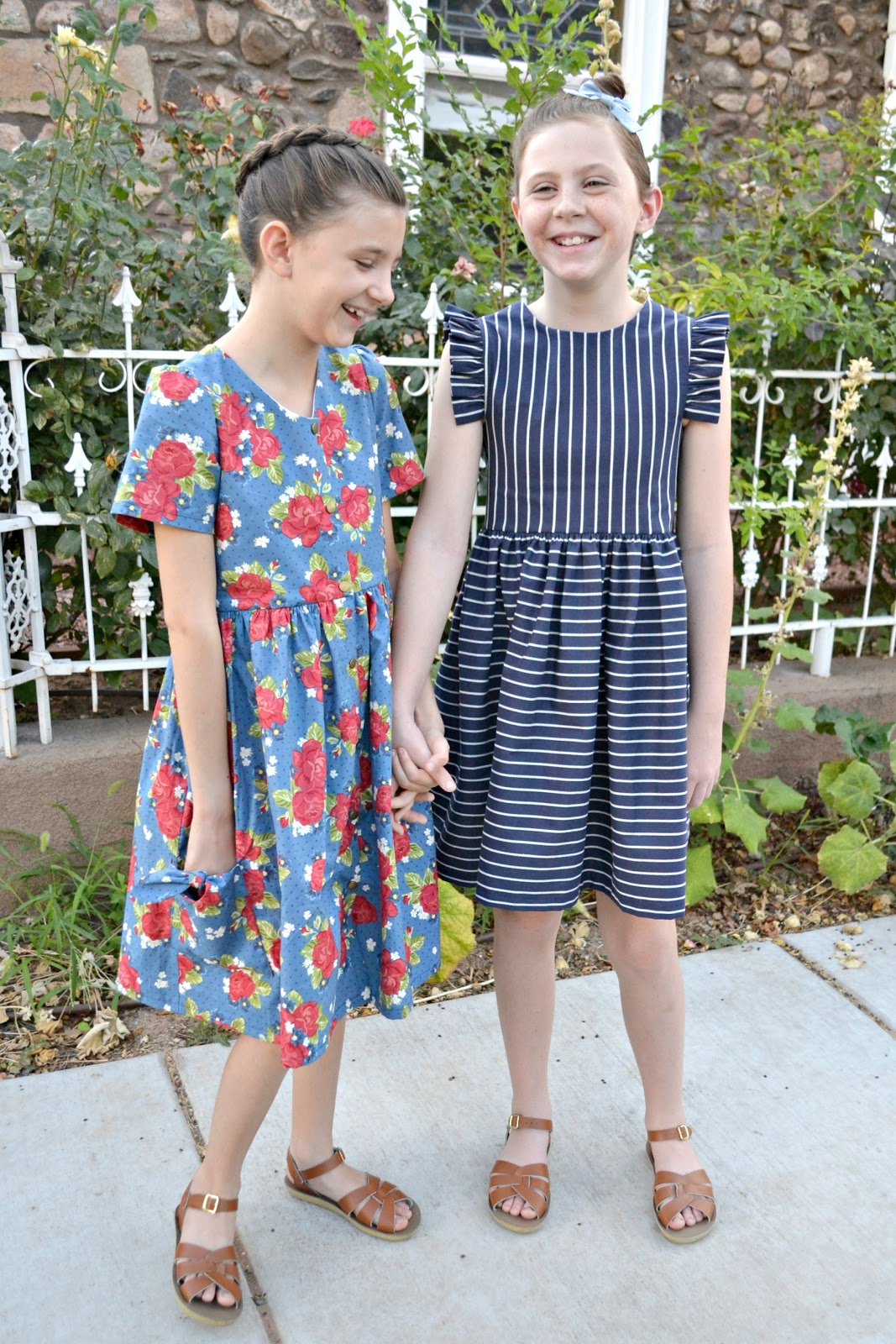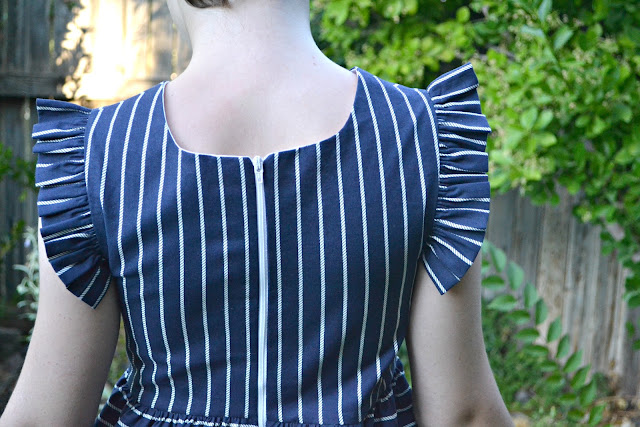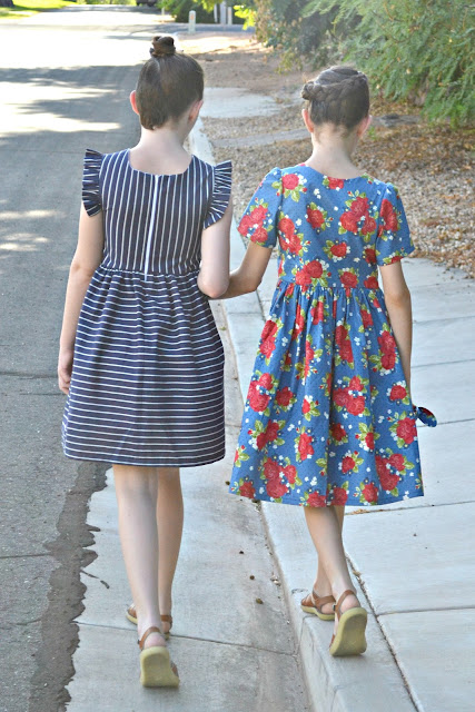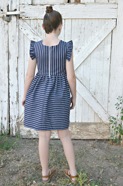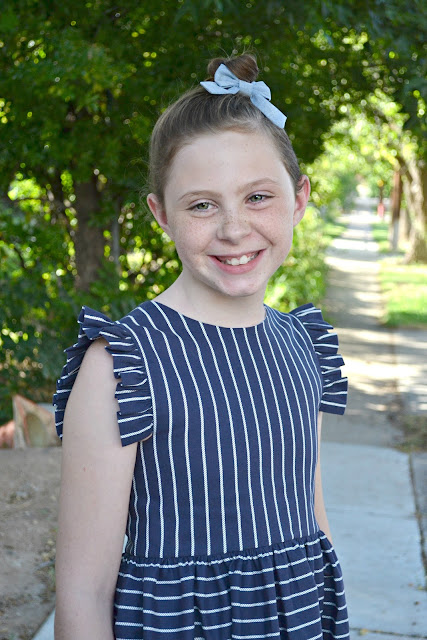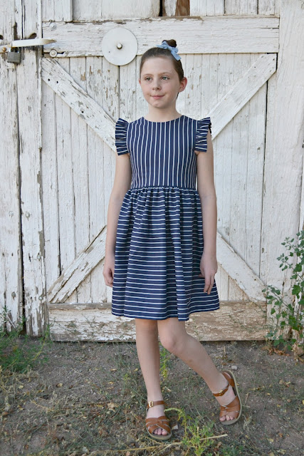 For Zoe's dress I drafted my own pattern and used Rope in Navy. Stripes are one of my favorite prints ever and I love playing around with them! The rope stripes are such a fun print!
