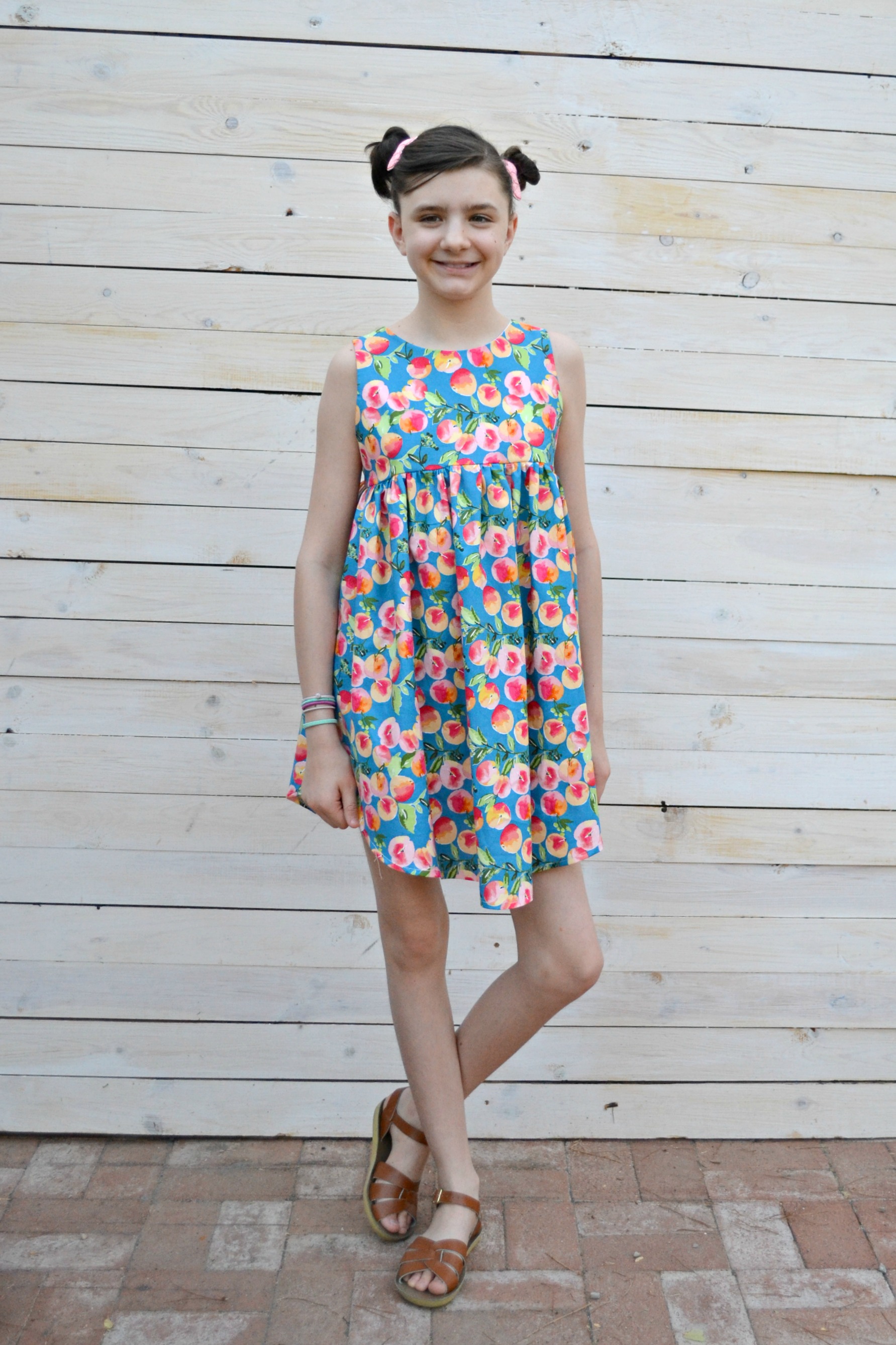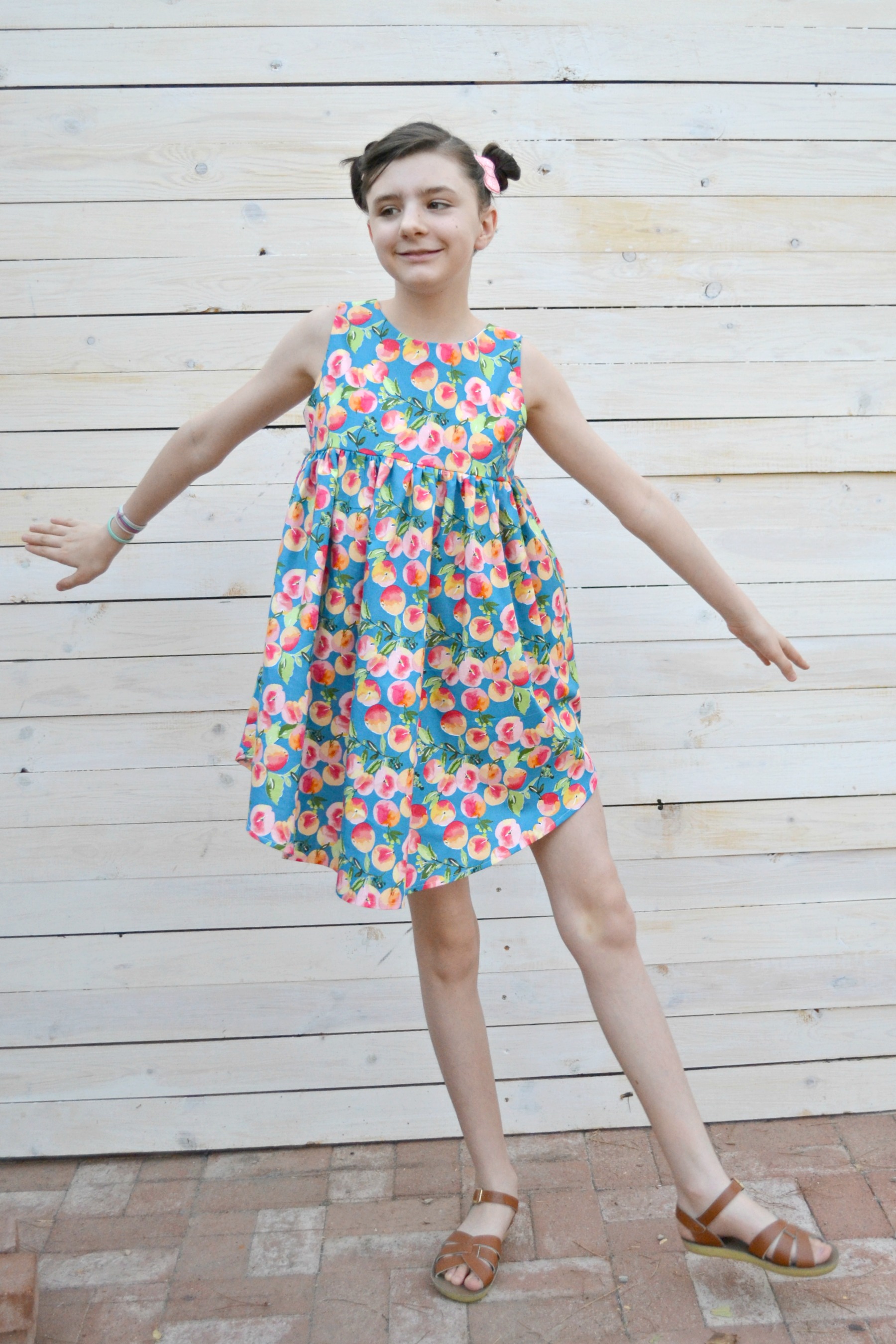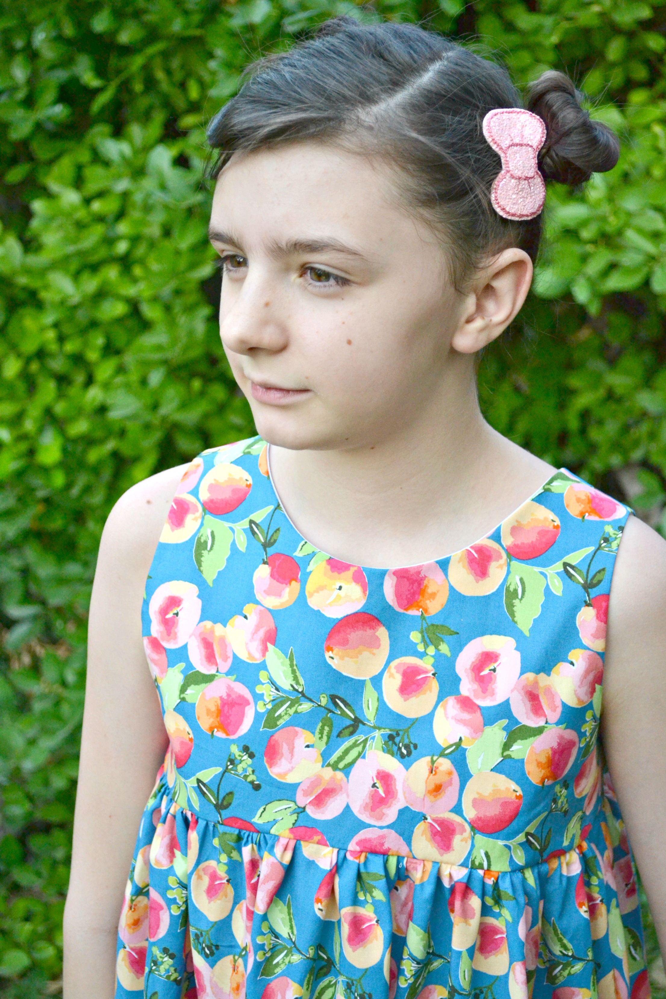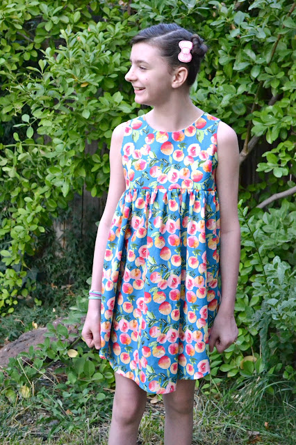 When I saw Glohaven from Riley Blake Designs had a peach print, we couldn't resist making a peach dress!