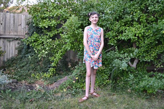 The dress is Little Lizard King Leiden. I know most of the country is heading into winter, but since we live in the desert our summer season is a bit longer. There's enough room in the bodice to be a tunic if Paisley decides to hit a growth spurt before next summer too, so no matter what it's a great piece to have.