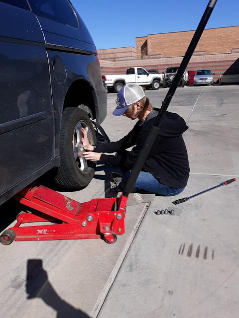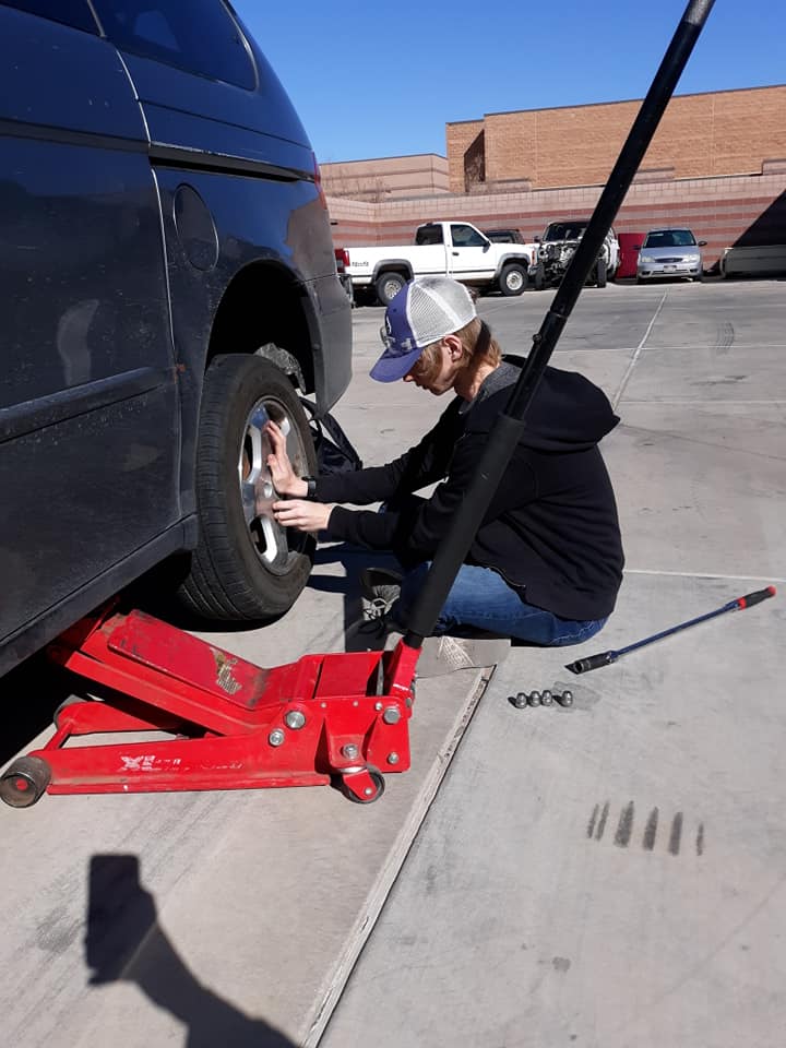 Gavin changing a tire.