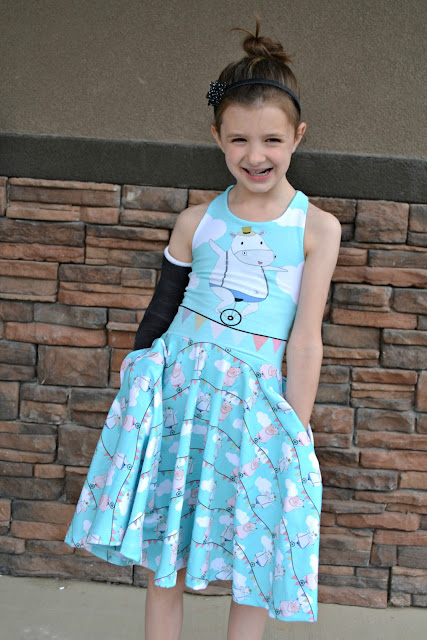 Of course I had to make her a sweet dress for the occasion and I am so excited that Kid's Clothes Week is this week too!